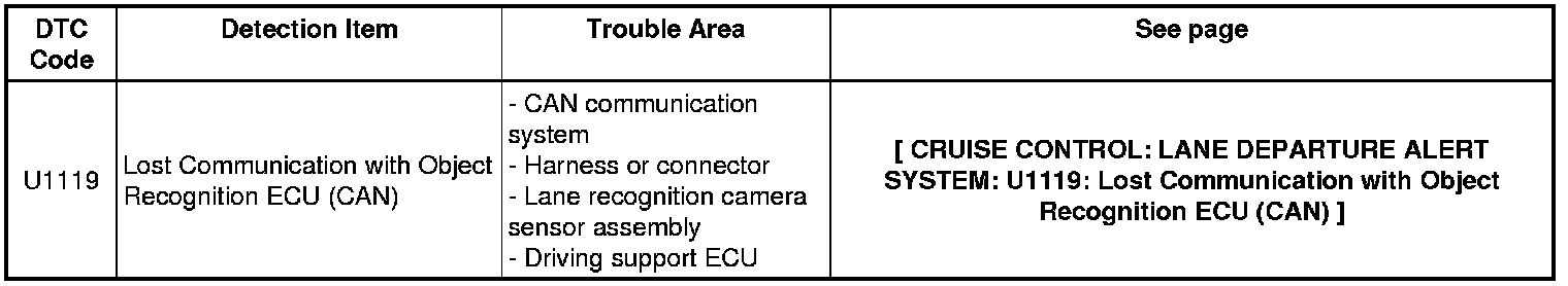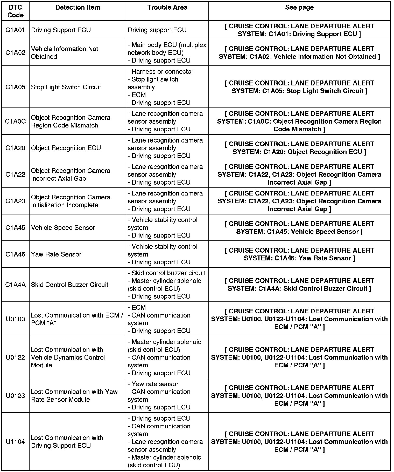 CRUISE CONTROL: LANE DEPARTURE ALERT SYSTEM: DIAGNOSTIC TROUBLE CODE CHART