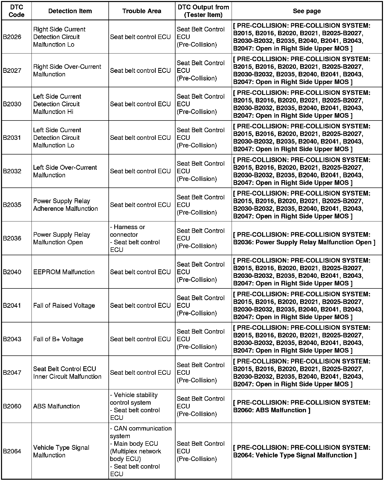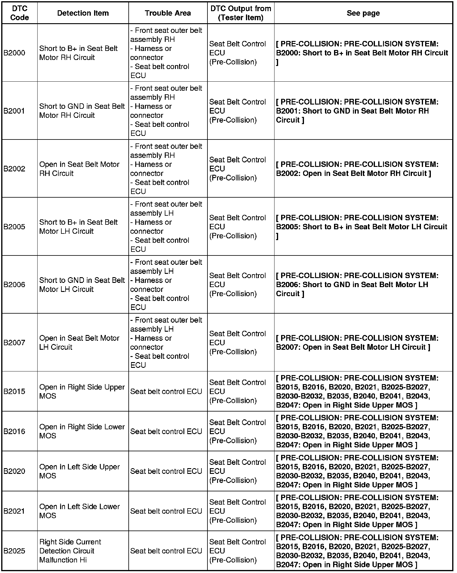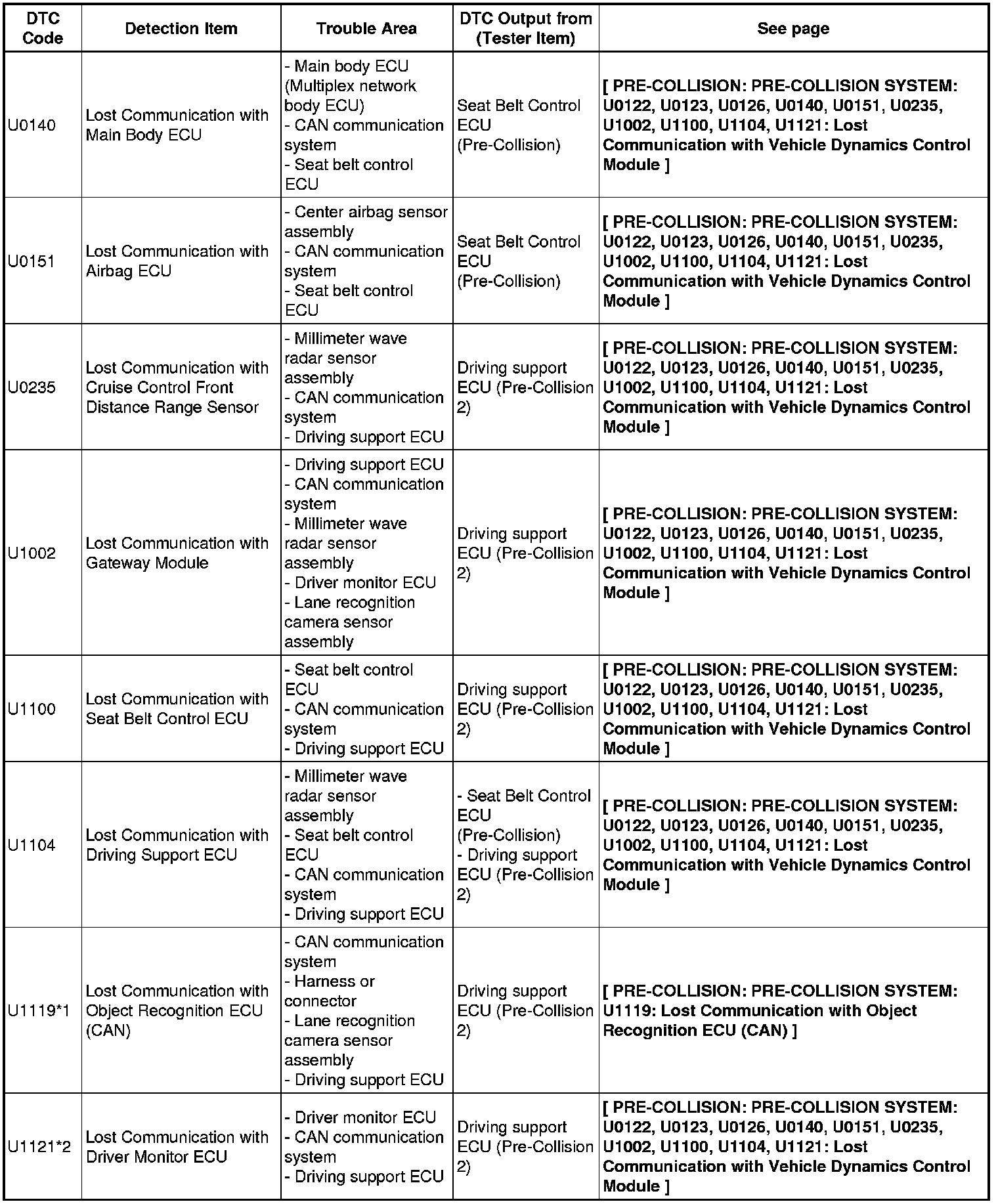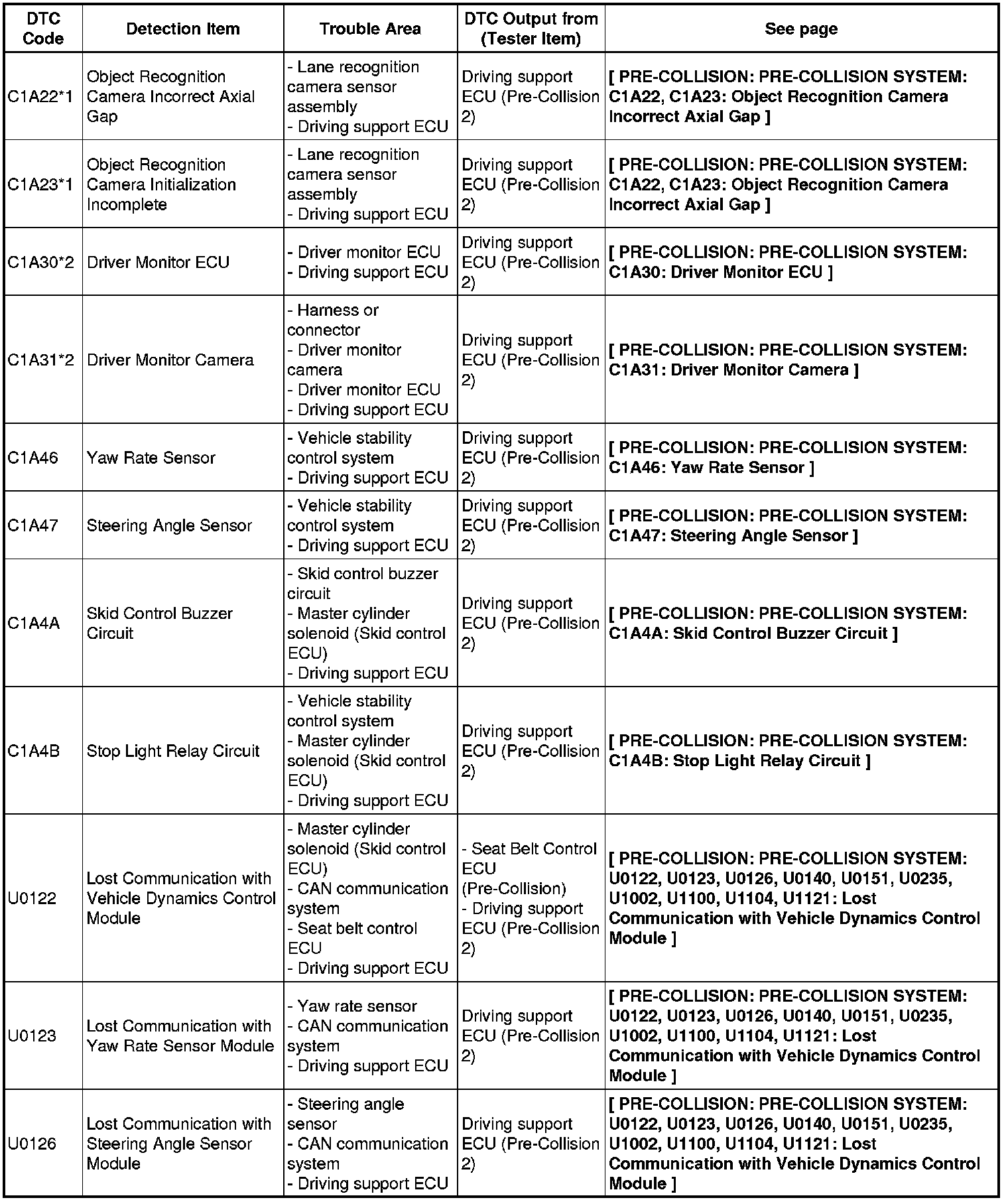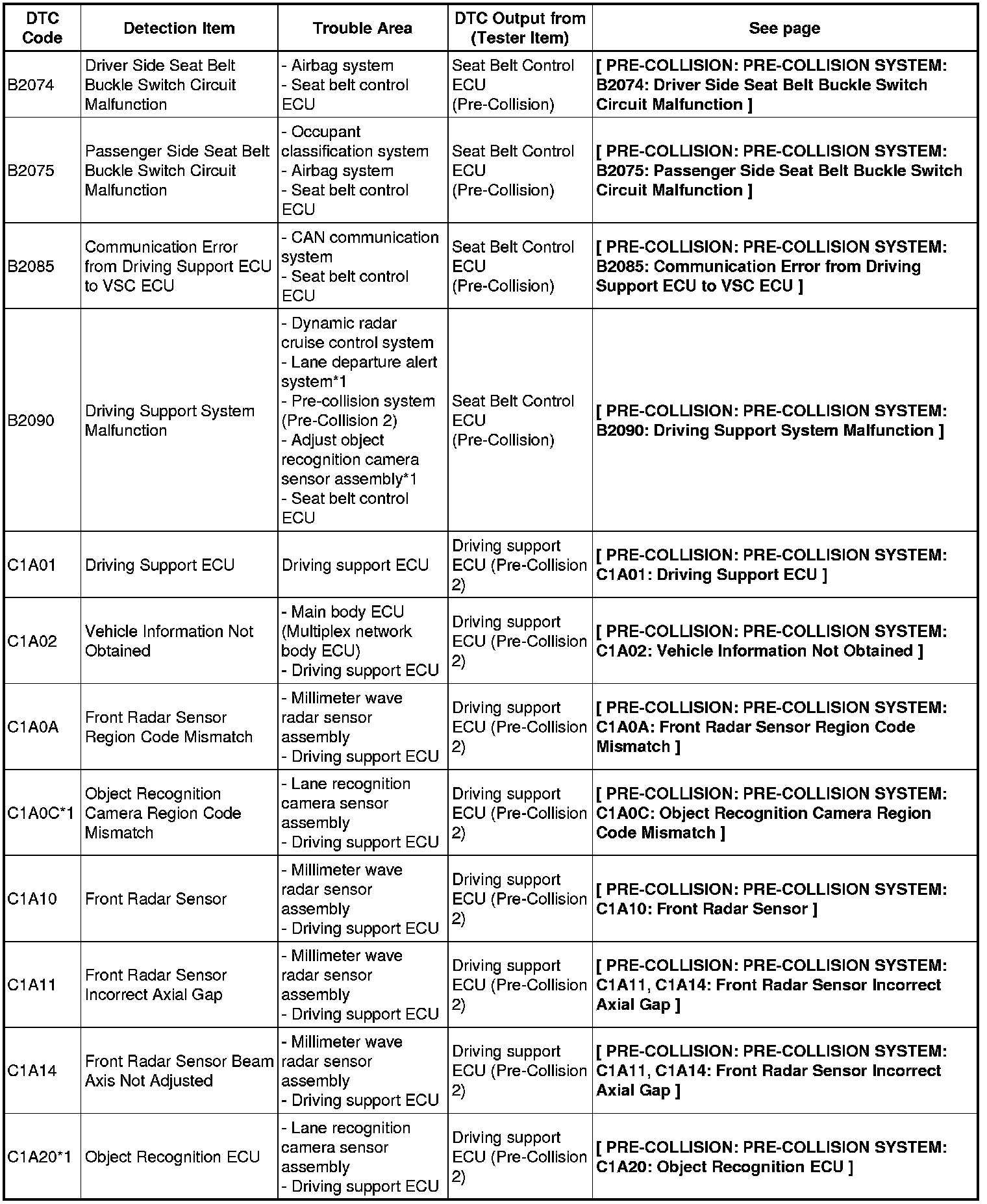 PRE-COLLISION: PRE-COLLISION SYSTEM: DIAGNOSTIC TROUBLE CODE CHART