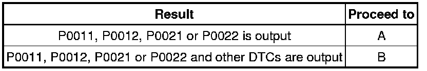 If any DTCs other than P0011, P0012, P0021 or P0022 are output, troubleshoot those DTCs first.