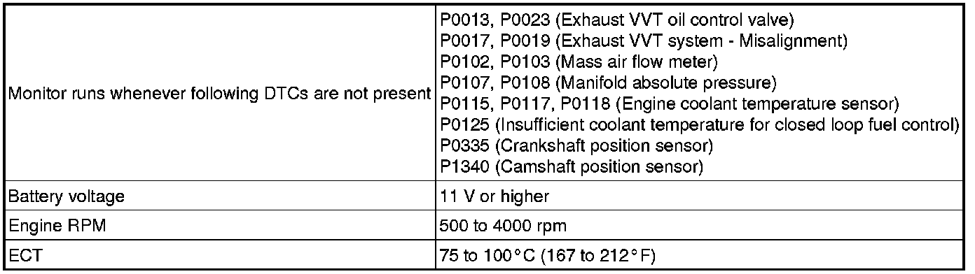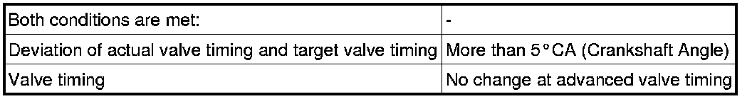 - 2. After the above condition 1 is met, the camshaft timing oil control valve is forcibly activated during 10 seconds.