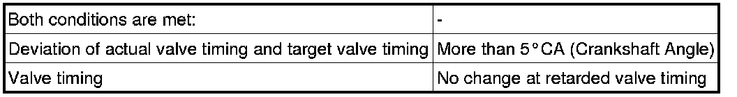 If the difference between the target and actual exhaust valve timing is large, and changes in actual exhaust valve timing are small, the ECM interprets this as a VVT controller being stuck and stores a DTC.