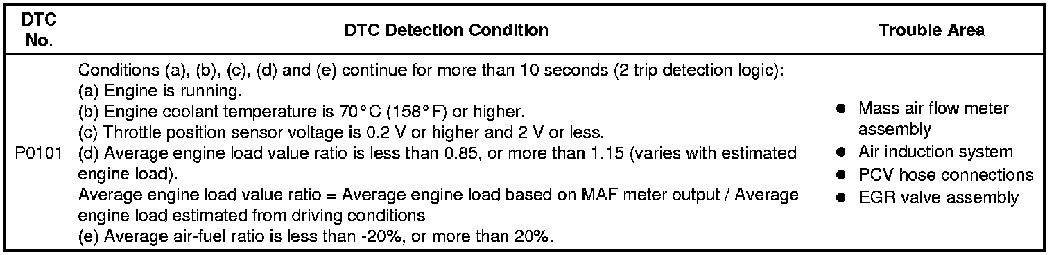 1UR-FE ENGINE CONTROL: SFI SYSTEM: P0101: Mass Air Flow Circuit Range / Performance Problem