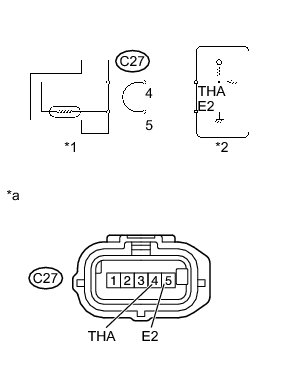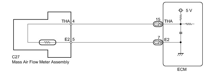 - The intake air temperature sensor is powered by a 5 V supply from the THA terminal of the ECM, via resistor R.