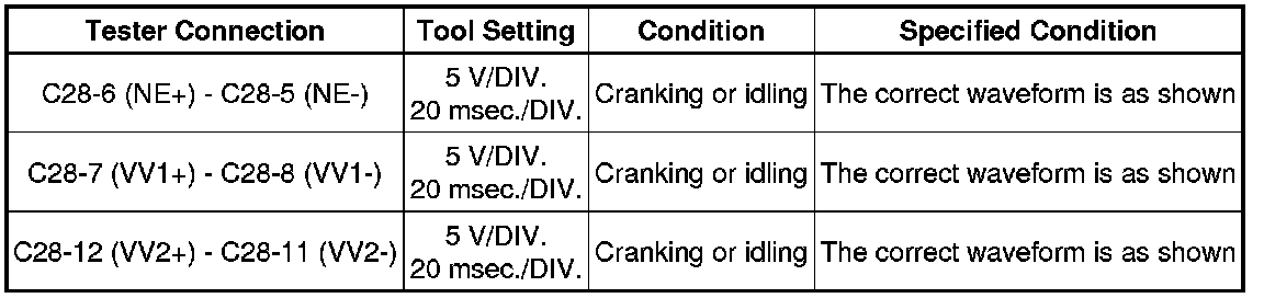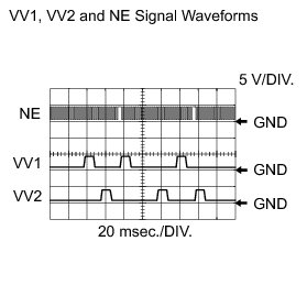VV1 and VV2 are the VVT sensor signals, and NE is the crankshaft position sensor signal.