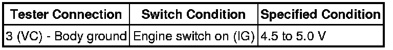 Also, when the sensor output voltage remains at below 0.3 V, or higher than 4.7 V for more than 4 seconds, the ECM stores a DTC.
