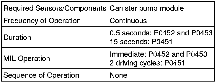 If the canister pressure sensor voltage output fluctuates rapidly for 10 seconds, the ECM interprets this as noise from the canister pressure sensor and stops the EVAP system monitor. The ECM then illuminates the MIL and stores the DTC (2 trip detection logic).