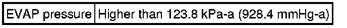 If the canister pressure sensor output [pressure] is higher than 123.8 kPa-a (928.4 mmHg-a), the ECM interprets this as an open or short circuit malfunction in the canister pressure sensor or its circuit and stops the EVAP system monitor. The ECM then illuminates the MIL and stores the DTC (1 trip detection logic).