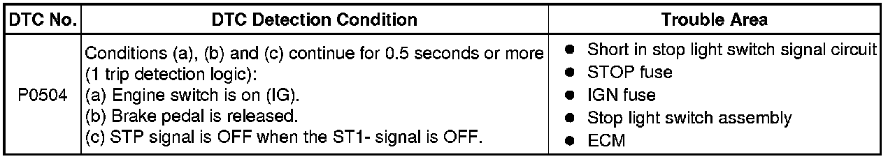 1UR-FE ENGINE CONTROL: SFI SYSTEM: P0504: Brake Switch "A" / "B" Correlation