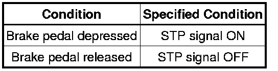The stop light switch is a duplex system that transmits two signals: STP and ST1-. These two signals are used by the ECM to monitor whether or not the brake system is working properly. If the signals, which indicate the brake pedal is being depressed and released, are detected simultaneously, the ECM interprets this as a malfunction in the stop light switch and stores the DTC.