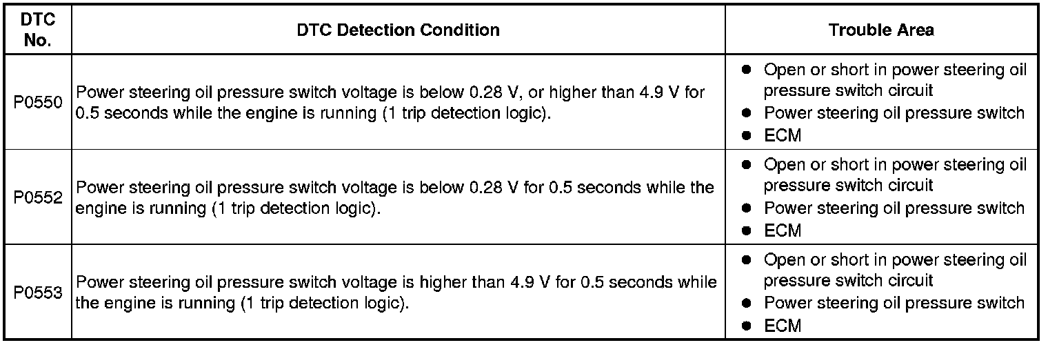 1UR-FE ENGINE CONTROL: SFI SYSTEM: P0550, P0552, P0553: Power Steering Pressure Sensor Circuit Malfunction
