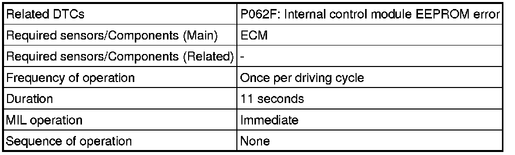 The ECM monitors its internal operation. If there is an internal operation malfunction, the ECM illuminates the MIL and stores a DTC.