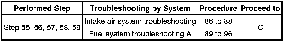 (c) If the malfunction could not be identified during the inspection in steps 55, 56, 57, 58 and 59, perform intake air system troubleshooting (steps 86 to 88). If engine starting trouble still occurs, perform fuel system troubleshooting A (steps 89 to 96).