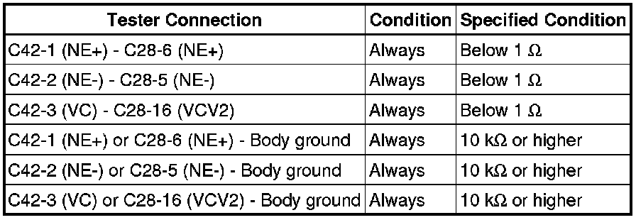 101. CHECK HARNESS AND CONNECTOR (CRANKSHAFT POSITION SENSOR - ECM)
