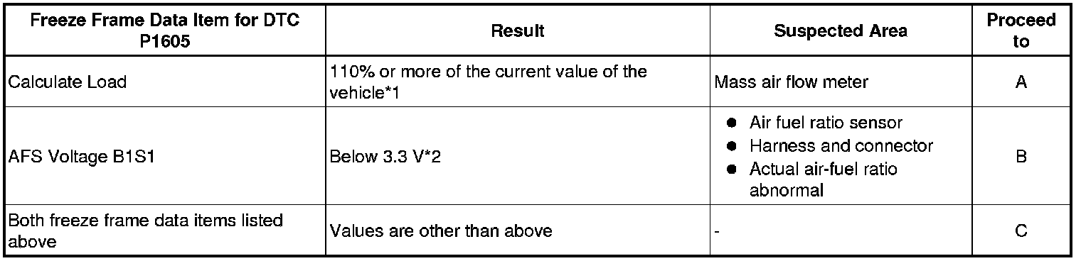 - *1: If the mass air flow meter is malfunctioning and incorrectly measures the intake air volume to be higher than the actual volume of air flowing through the intake manifold, the freeze frame data will show a high engine load value.