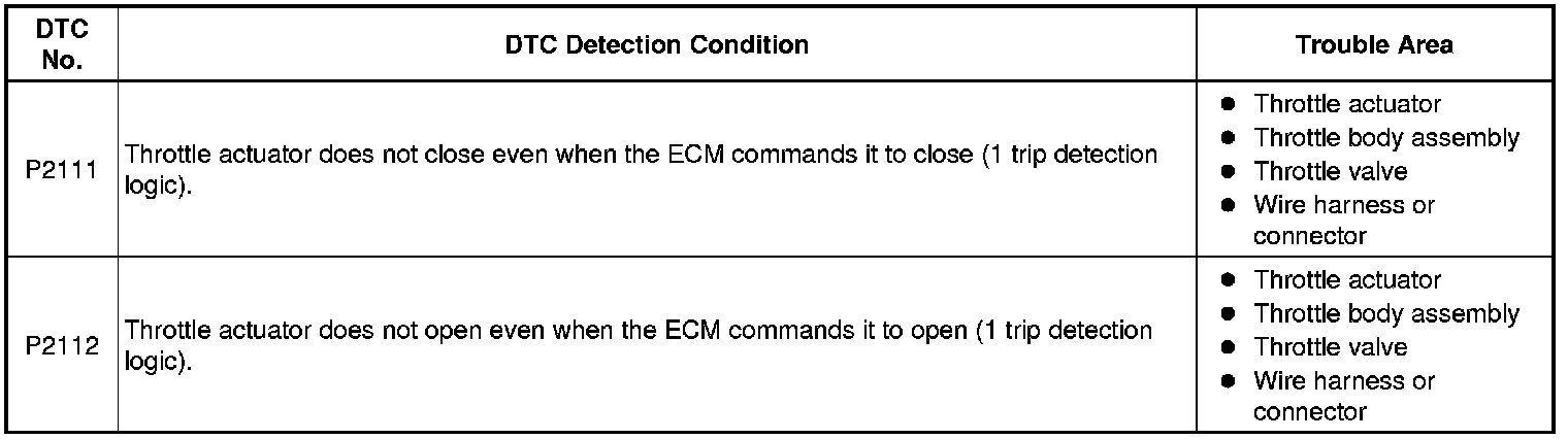 1UR-FE ENGINE CONTROL: SFI SYSTEM: P2111, P2112: Throttle Actuator Control System - Stuck Open