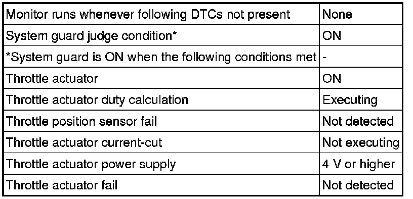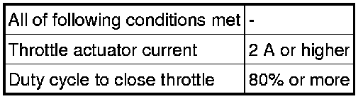 The ECM determines that there is a malfunction in the ETCS when the throttle valve remains at a fixed angle despite a high drive current from the ECM. The ECM illuminates the MIL and stores a DTC.