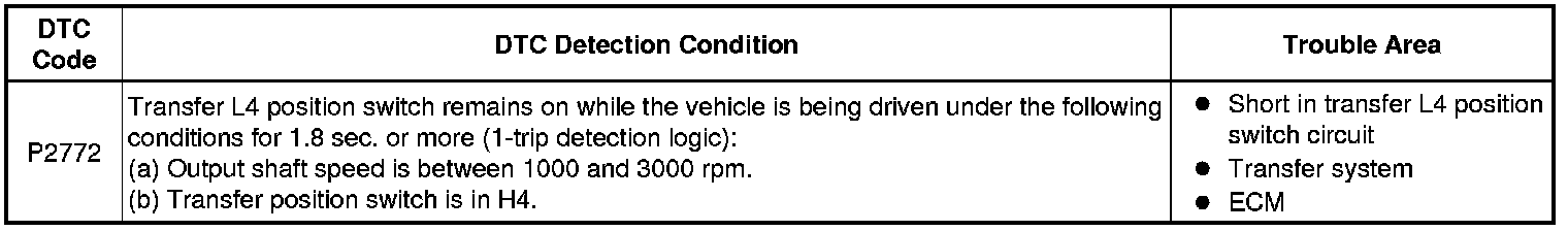 This DTC indicates that the transfer L4 position switch remains on.