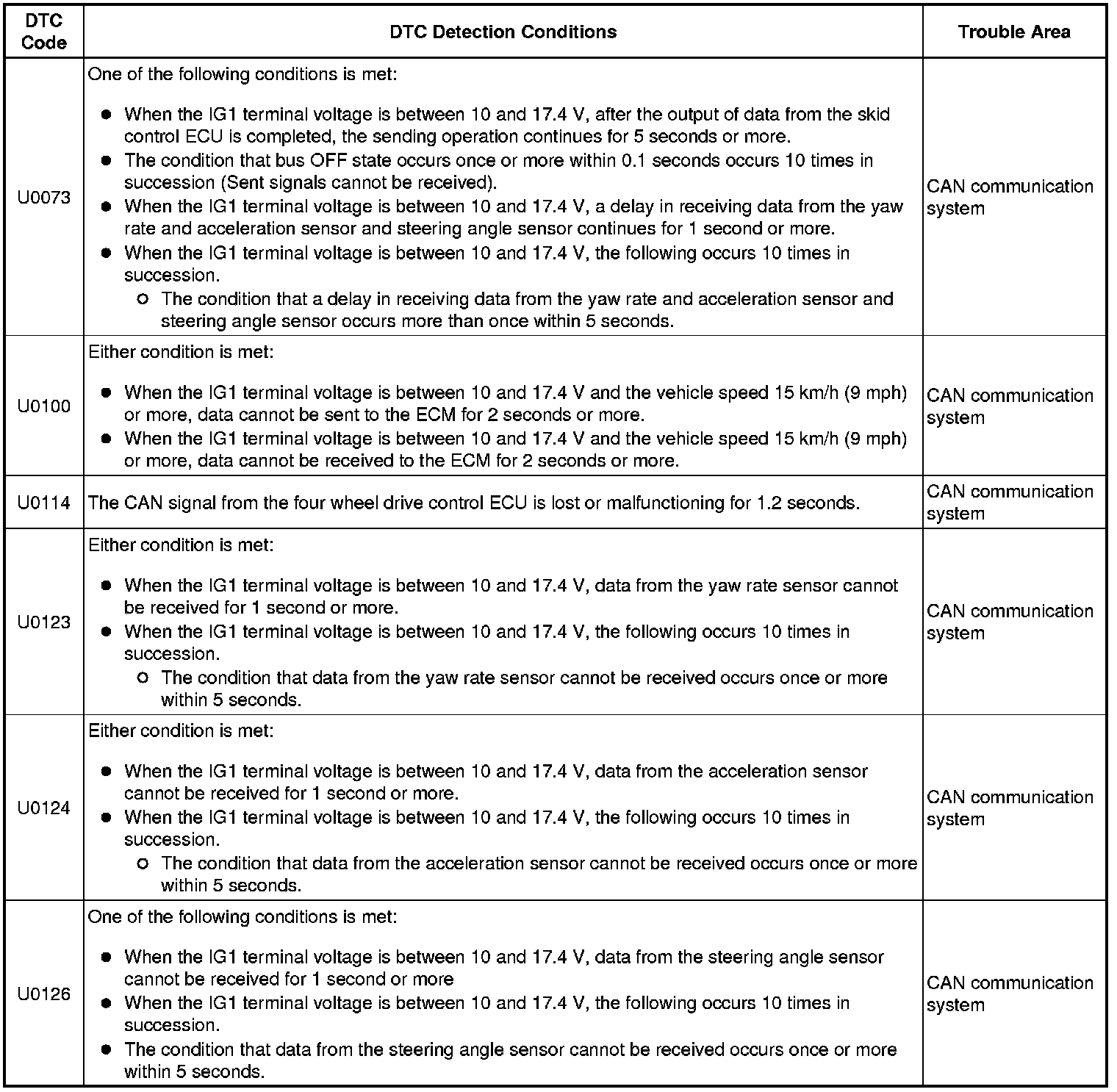 BRAKE CONTROL / DYNAMIC CONTROL SYSTEMS: VEHICLE STABILITY CONTROL SYSTEM: U0073, U0100, U0114, U0123, U0124, U0126: Control Module Communication Bus OFF