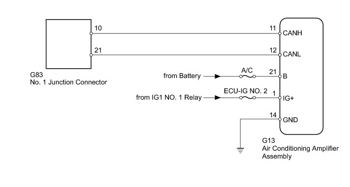 NG -- REPAIR OR REPLACE AIR CONDITIONING AMPLIFIER CAN BRANCH WIRE OR CONNECTOR (CANH, CANL)