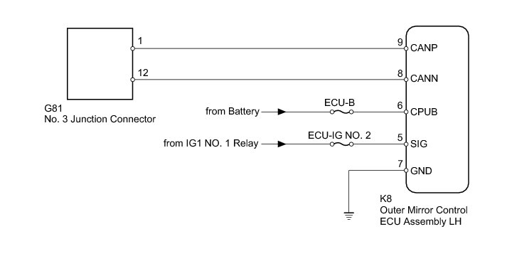 NG -- REPAIR OR REPLACE OUTER MIRROR CONTROL ECU LH CAN BRANCH WIRE OR CONNECTOR (CANP, CANN)