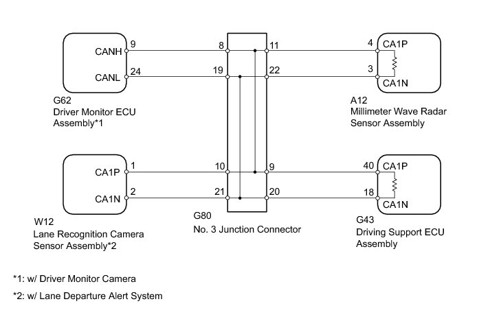 NG -- REPAIR OR REPLACE CAN MAIN WIRE CONNECTED TO DRIVING SUPPORT ECU (DRIVING SUPPORT ECU - NO. 3 JUNCTION CONNECTOR)