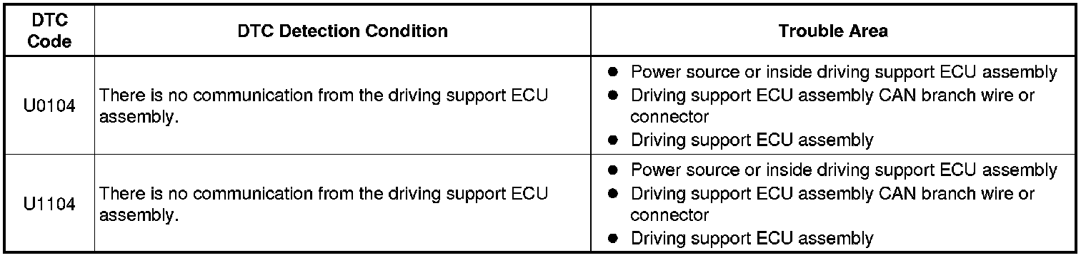 NETWORKING: CAN COMMUNICATION SYSTEM: U0104, U1104: Lost Communication with Driving Support ECU