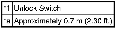 (2) Inspect the entry back door unlock operating range. While standing at the rear of the vehicle, hold the key so that it is facing the direction shown in the illustration at the same height as the back door electrical key switch and approximately 0.7 m (2.30 ft.) from the vehicle, press the unlock switch of the back door electrical key switch and check that all the doors unlock.