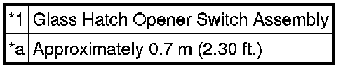 (2) Inspect the entry glass hatch open operating range. While standing at the rear of the vehicle, hold the key at the same height as the back door electrical key switch (approximately 0.9 m (2.95 ft.) from the ground) and approximately 0.7 m (2.30 ft.) from the vehicle as shown in the illustration, press the glass hatch opener switch assembly and check that the glass hatch opens.