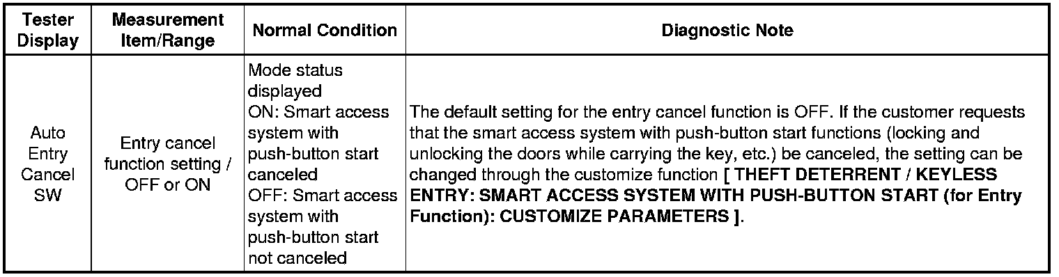 THEFT DETERRENT / KEYLESS ENTRY: SMART ACCESS SYSTEM WITH PUSH-BUTTON START (for Entry Function): All Door Entry Lock/Unlock Functions do not Operate, but Wireless Functions Operate