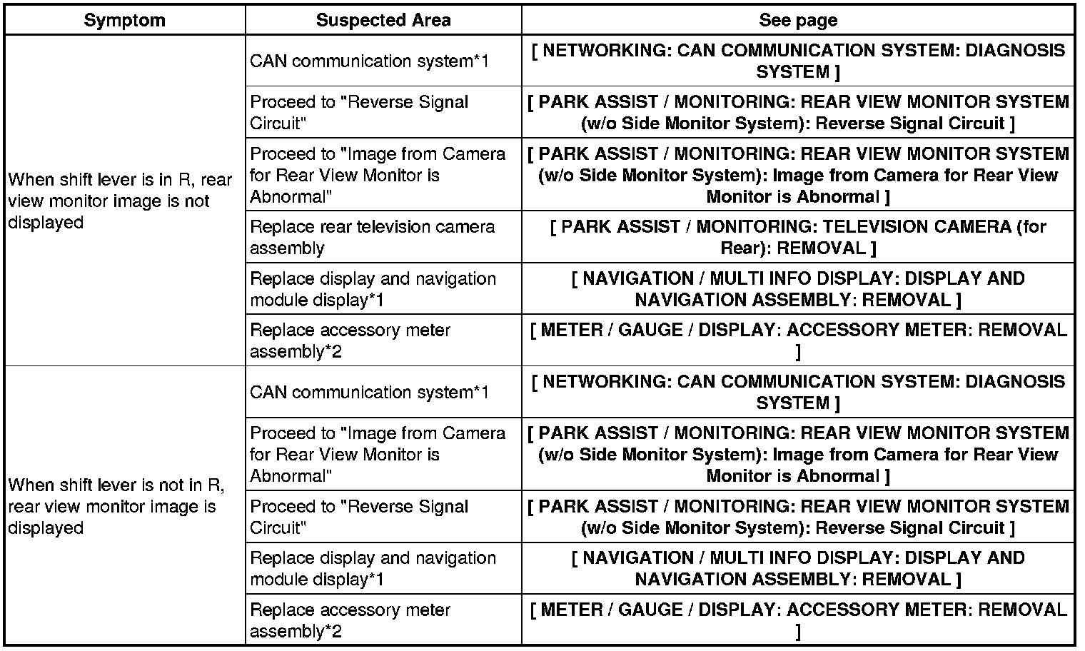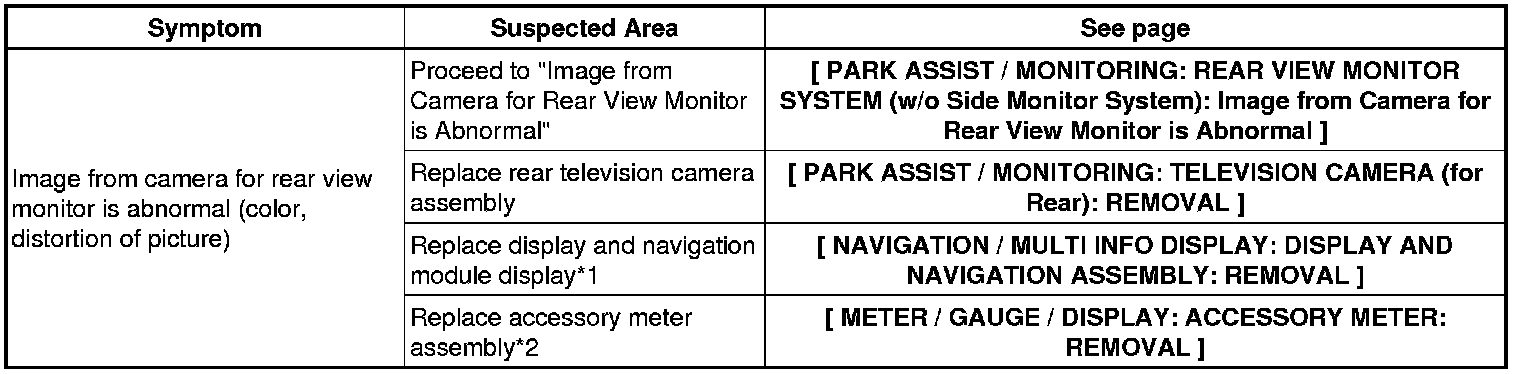 PARK ASSIST / MONITORING: REAR VIEW MONITOR SYSTEM (w/o Side Monitor System): PROBLEM SYMPTOMS TABLE