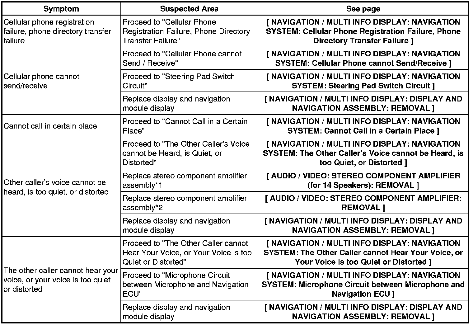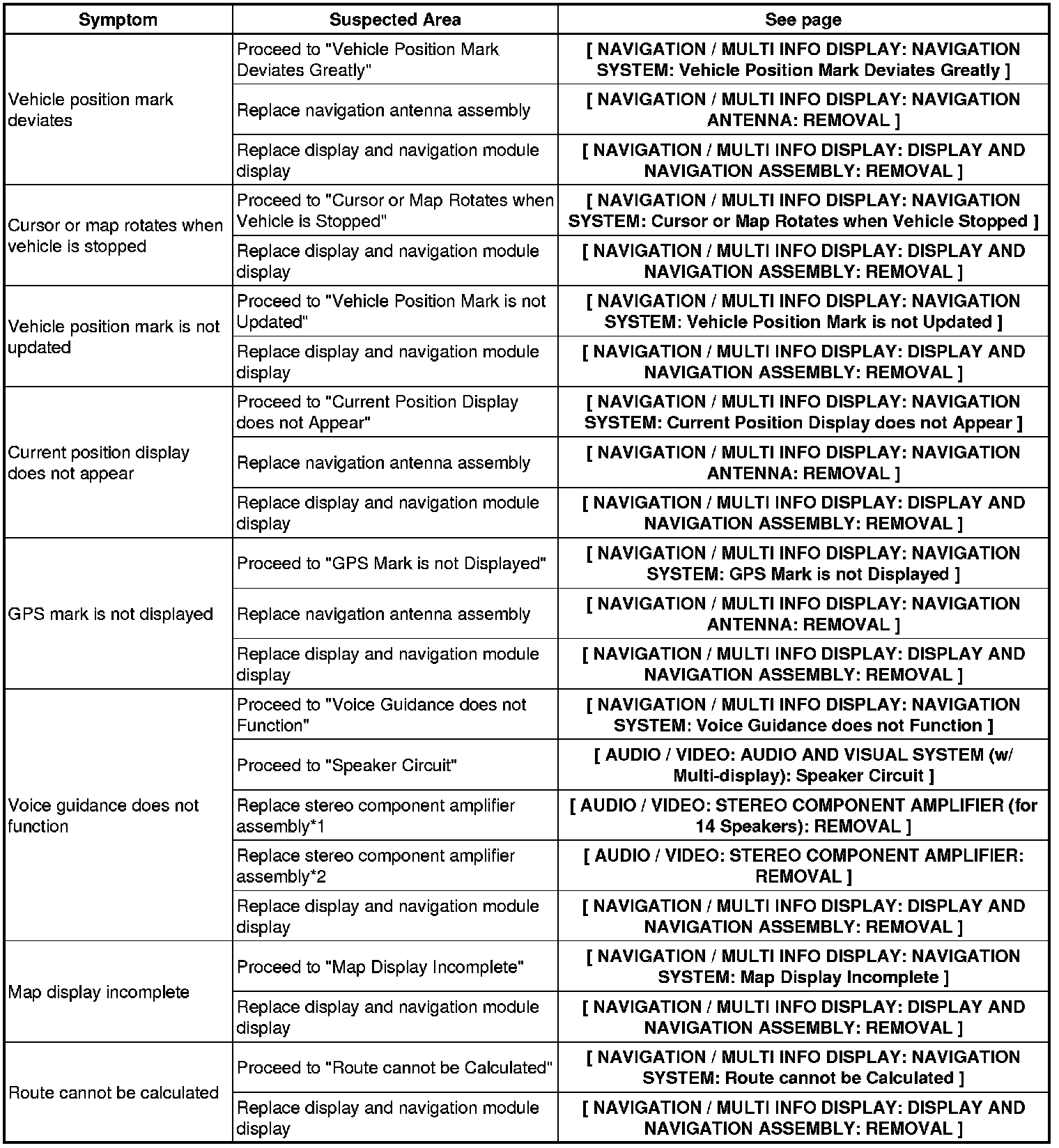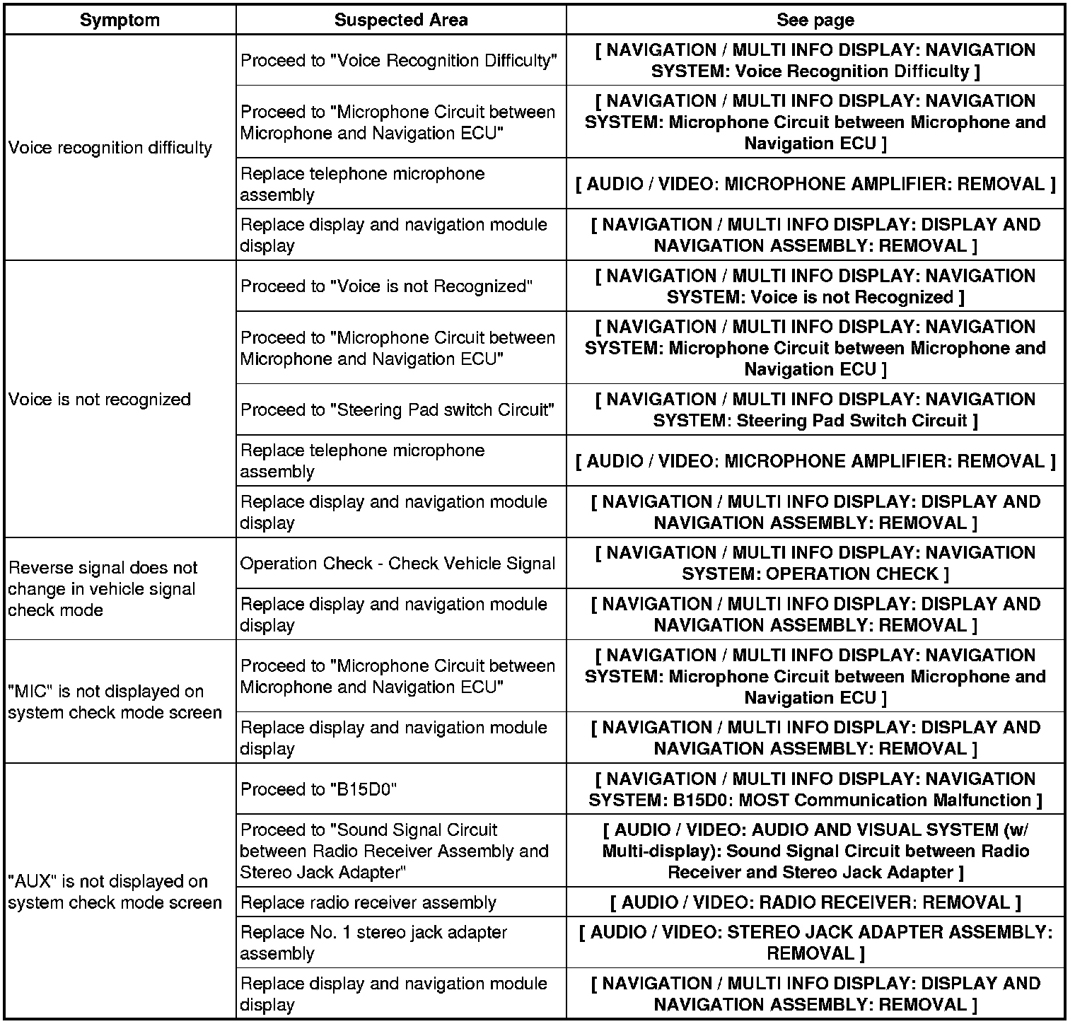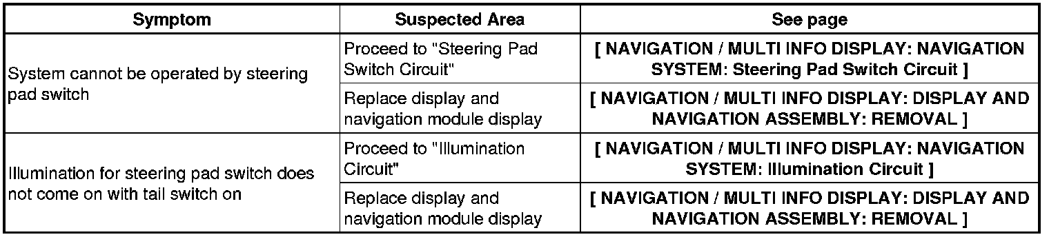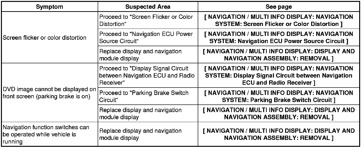 NAVIGATION / MULTI INFO DISPLAY: NAVIGATION SYSTEM: PROBLEM SYMPTOMS TABLE