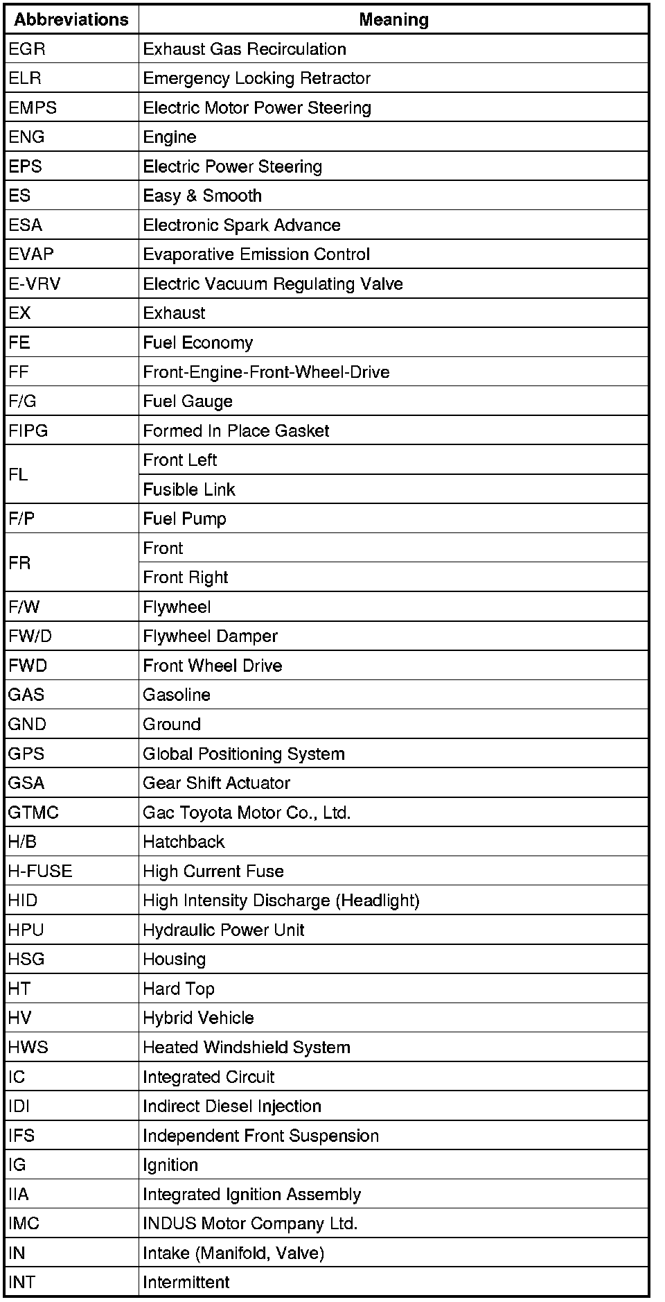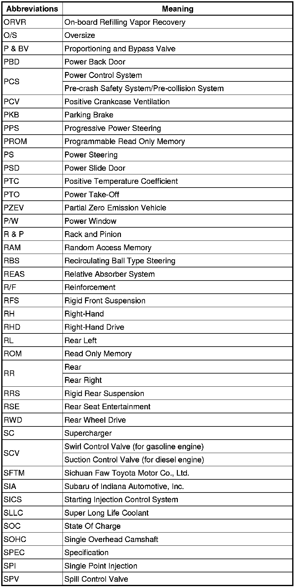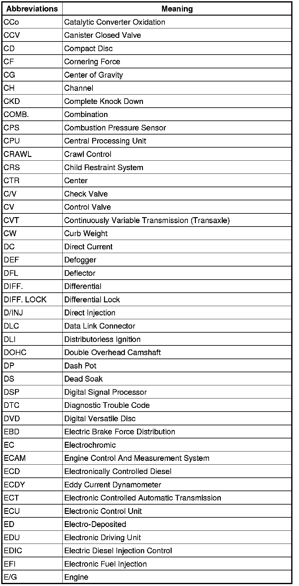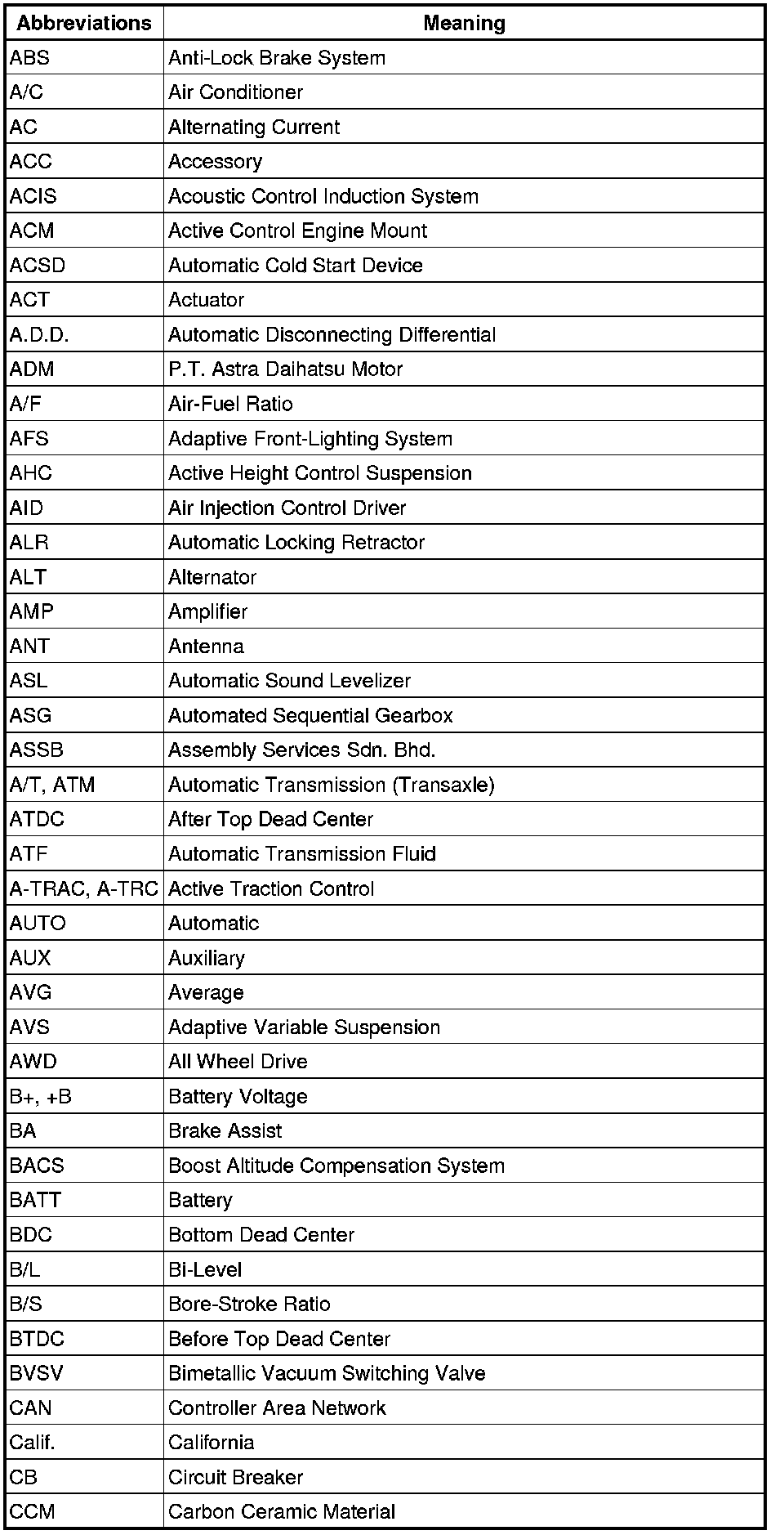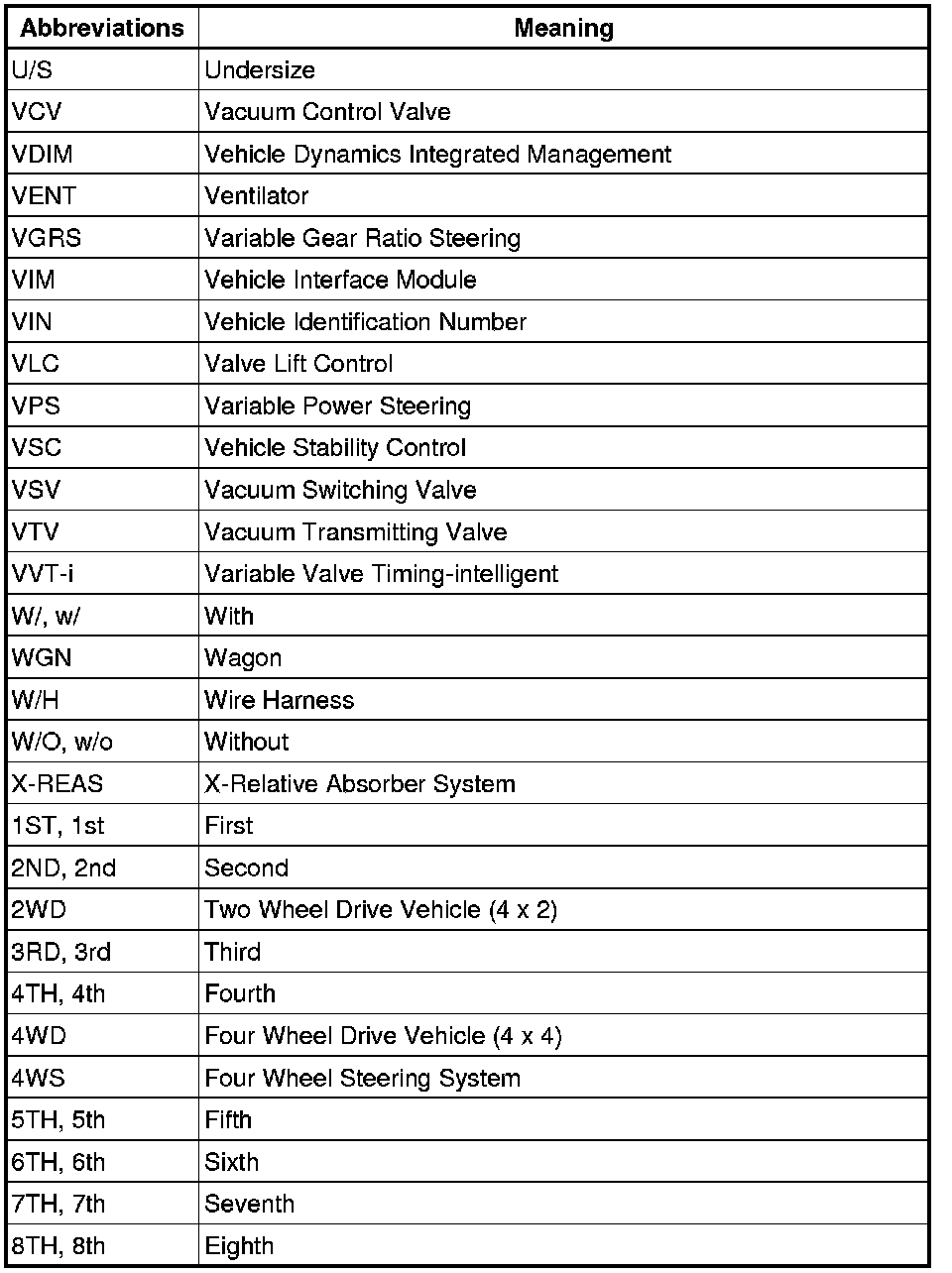 Terms - Abbreviations Used In Service Procedures