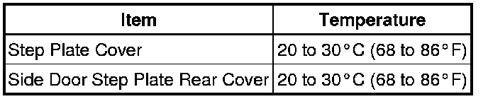 When installing the side door step plate rear cover, heat the step plate cover and side door step plate rear cover using a heat light.