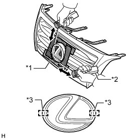 4. REMOVE RADIATOR GRILLE (OR FRONT PANEL) EMBLEM (w/ Dynamic Radar Cruise Control System)
