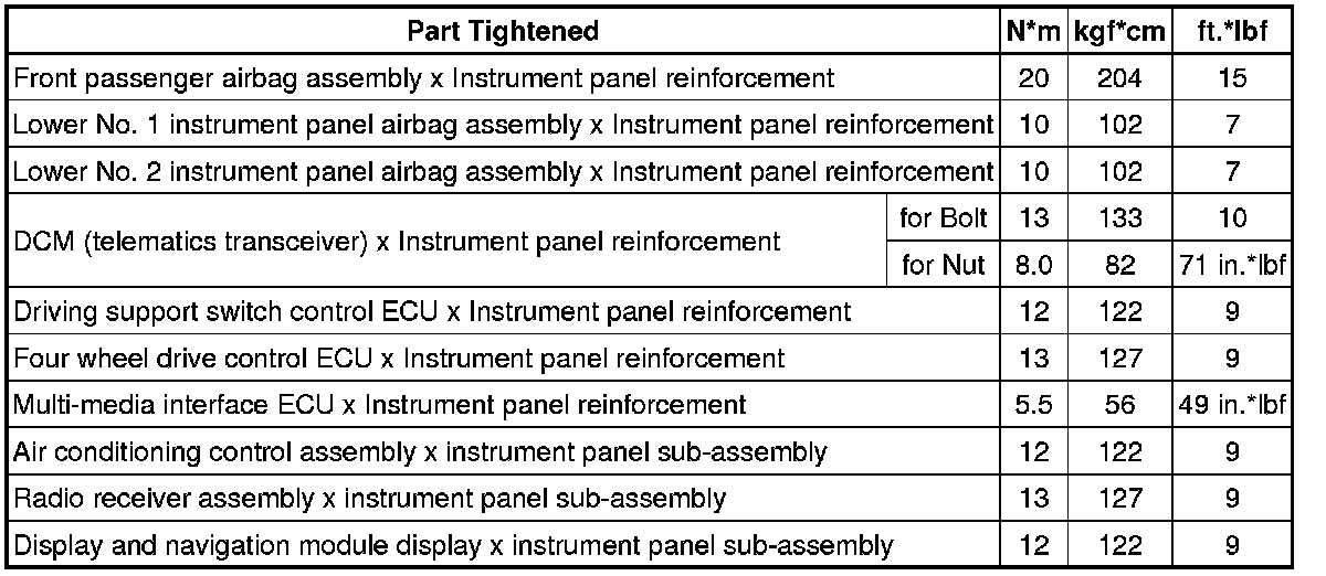 SPECIFICATIONS: INTERIOR PANELS / TRIM: TORQUE SPECIFICATIONS