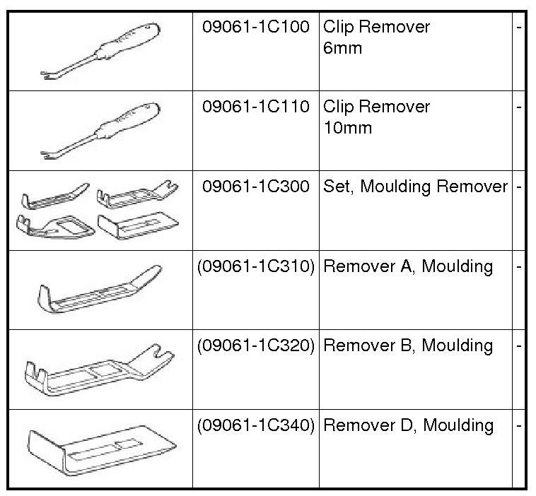 PREPARATION: INTERIOR PANELS / TRIM: RECOMMENDED TOOLS