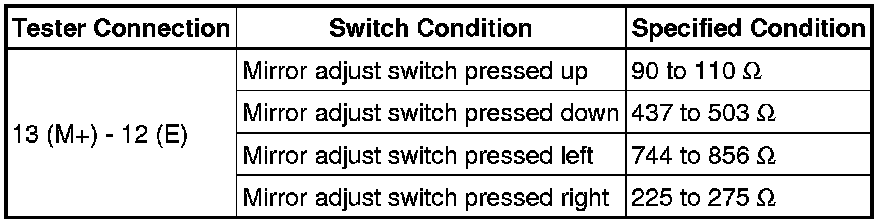 If the result is not as specified, replace the outer mirror switch assembly.