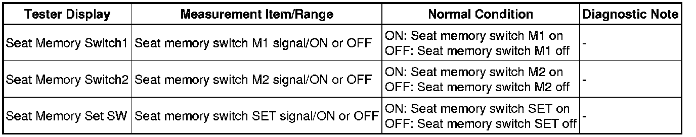 2. READ VALUE USING TECHSTREAM (SEAT MEMORY SWITCH)