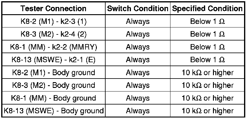 (b) Disconnect the k2 switch connector.