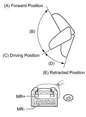 (a) Select the Active Test, use the Techstream to generate a control command, and then check the mirror retract function Scan Tool Testing and Procedures.