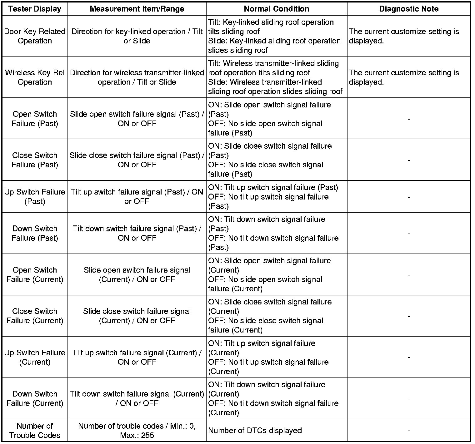 SLIDING ROOF / CONVERTIBLE: SLIDING ROOF SYSTEM: DATA LIST / ACTIVE TEST
