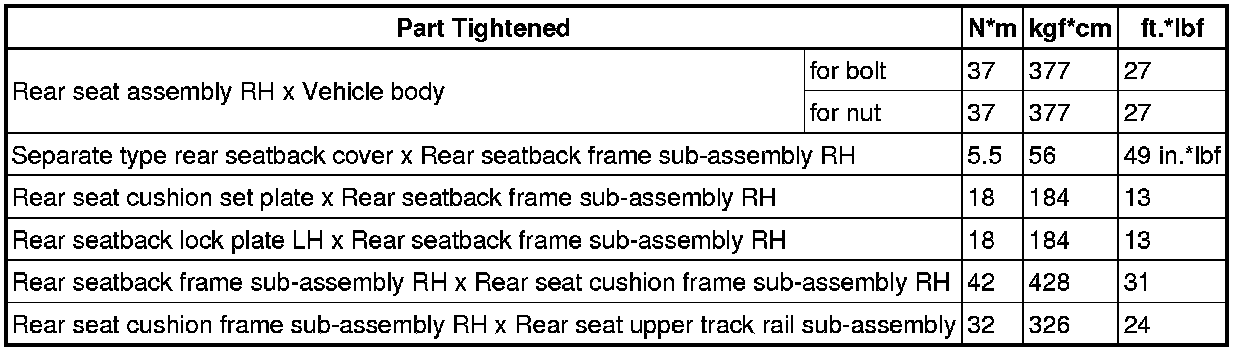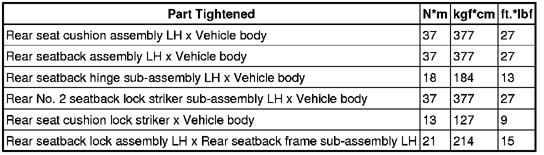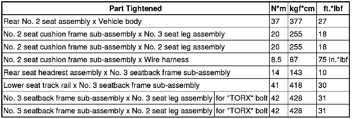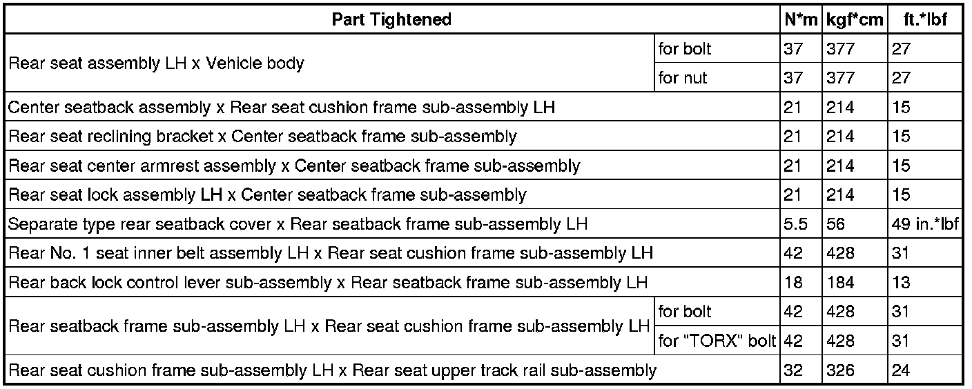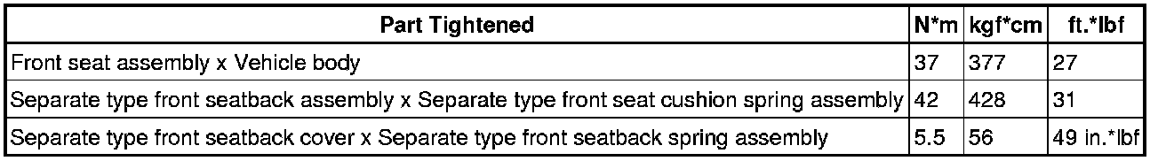 SPECIFICATIONS: SEAT: TORQUE SPECIFICATIONS