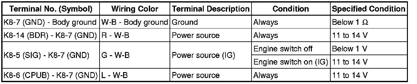 (a) Disconnect the K8 connector from the outer mirror control ECU assembly LH.