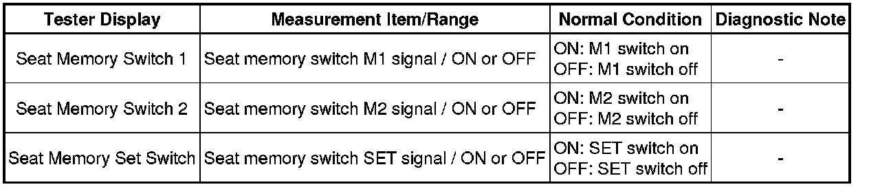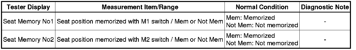NG -- READ VALUE USING TECHSTREAM (SEAT MEMORY SWITCH)