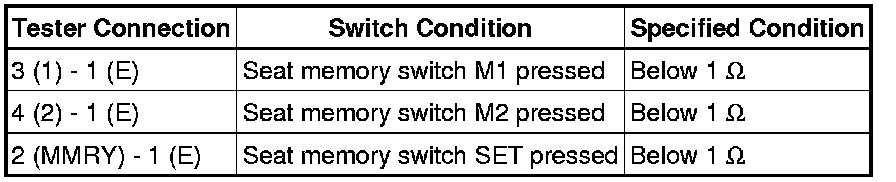 5. INSPECT SEAT MEMORY SWITCH