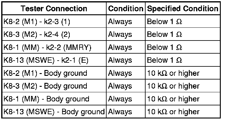 (b) Disconnect the k2 switch connector.