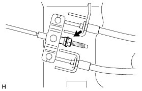 (c) Loosen the lock nut and adjusting nut to completely release the parking brake cable.