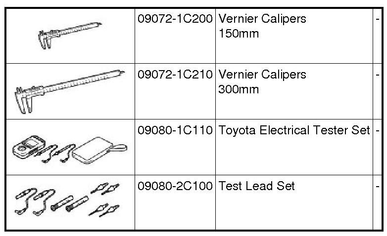 PREPARATION: PARKING BRAKE: RECOMMENDED TOOLS