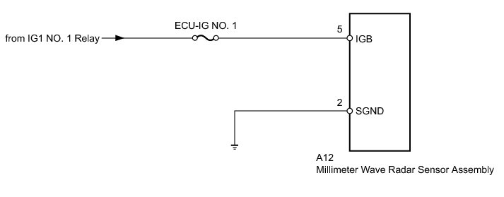 This circuit provides power to the millimeter wave radar sensor. The millimeter wave radar sensor emits radar waves towards an object in front and measures the distance and direction of the object by receiving the beam reflections. Based on the reflections, the sensor calculates the difference in speed between the vehicle and the object in front.