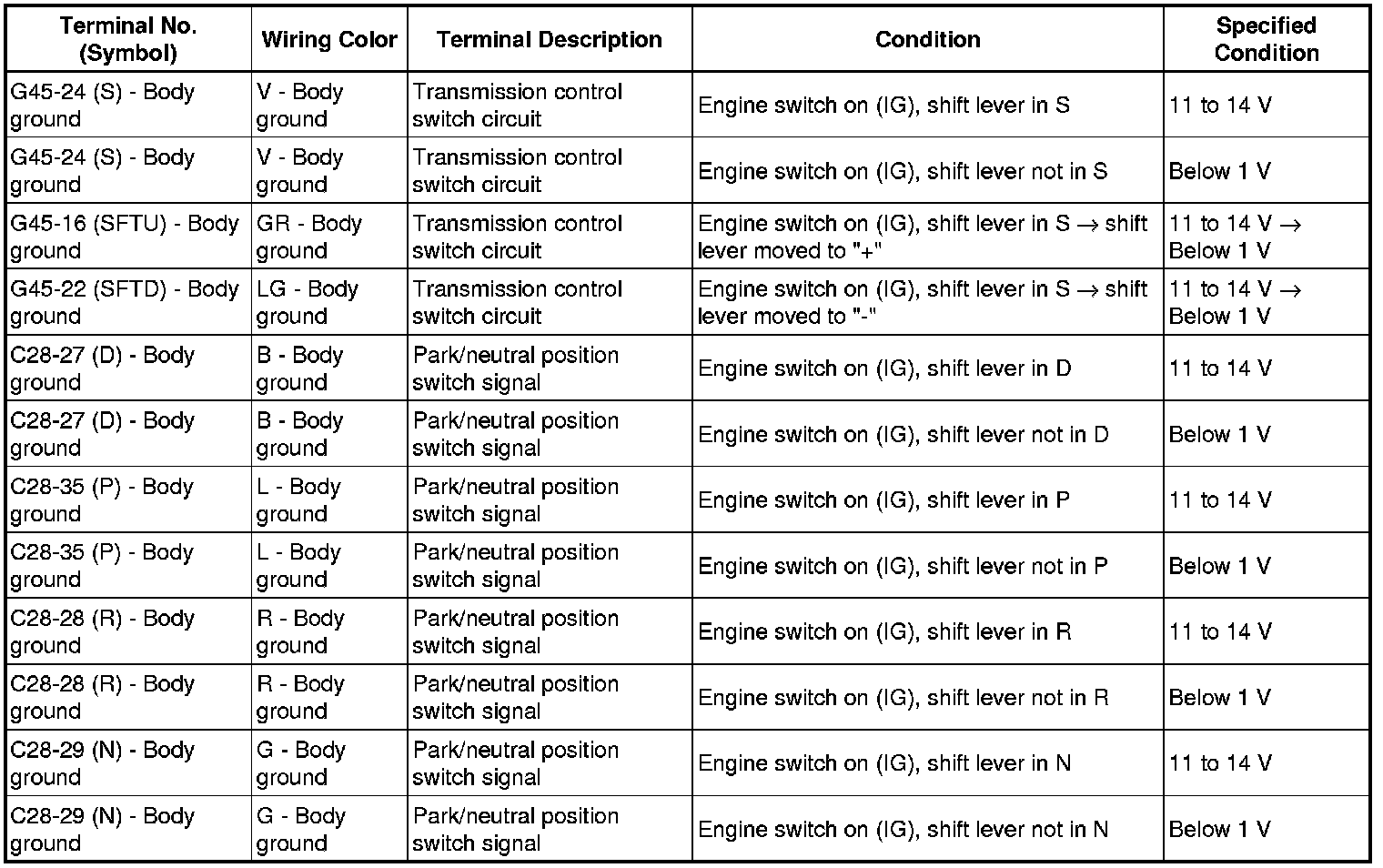 (d) Measure the voltage according to the value(s) in the table below.